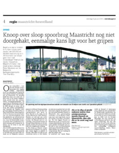 Het Belang van Limburg en De Limburger hebben afgelopen week de euregionale primeur mogelijk gemaakt dat een opiniestuk over de spoorbrug in Maastricht gelijktijdig aan beide zijden van de Maas gelezen kon worden.